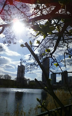 Instead, I got much more than I imagined. Although clouds were casting a shadow on the landscape, the sun peeking through the clouds and branches made it possible not only to capture the skyline, but also its reflection.